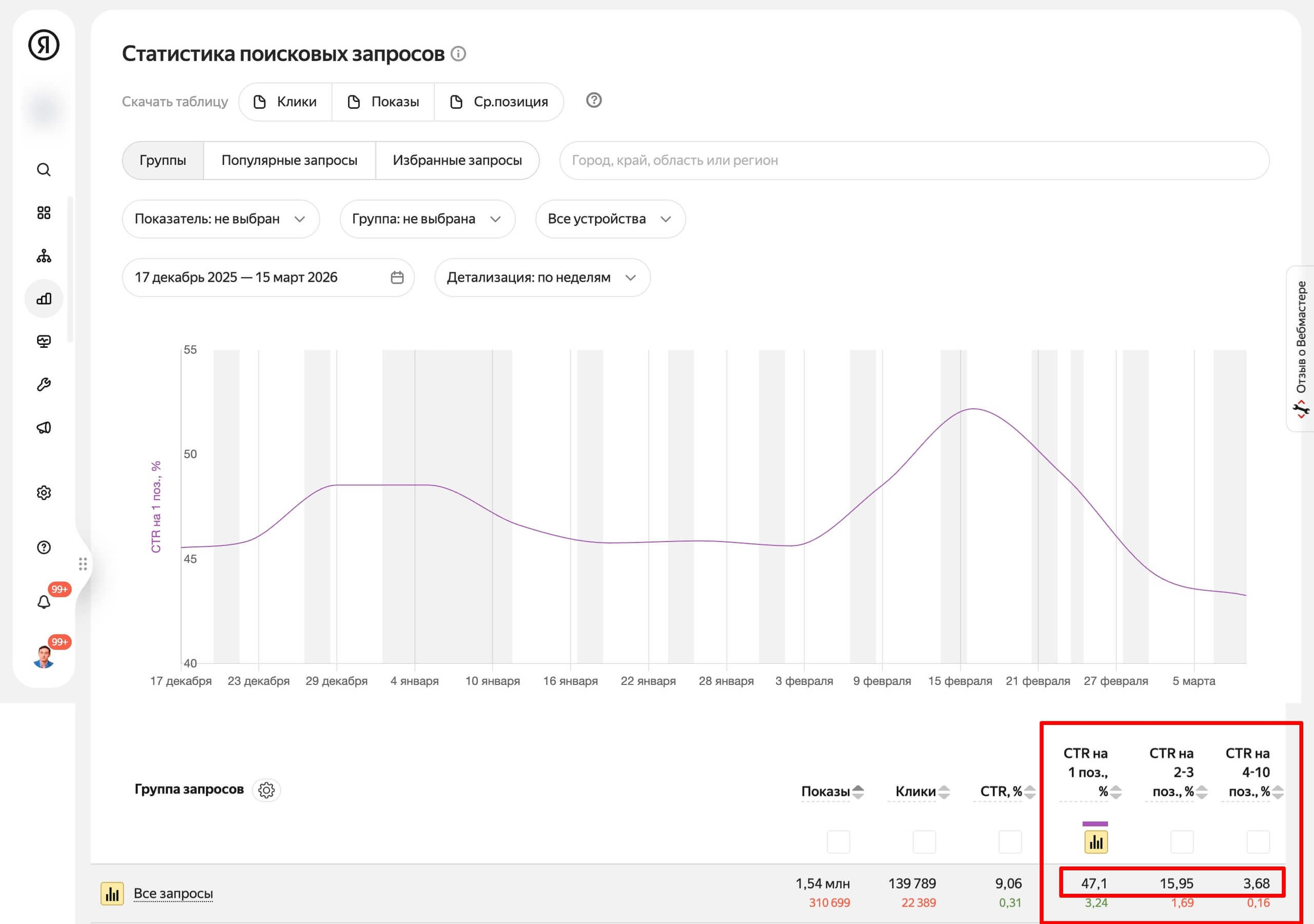- Если кликабельность сайта не естественная для занимаемой позиции. Яндекс высчитывает CTR (кликабельность) каждой позиции. Если сайт находится на 25 позиции, его реальный CTR будет в районе 0,05%. При этом если по нему искусственно начинают активно кликать имитируя CTR в районе 5% - это аномалия.